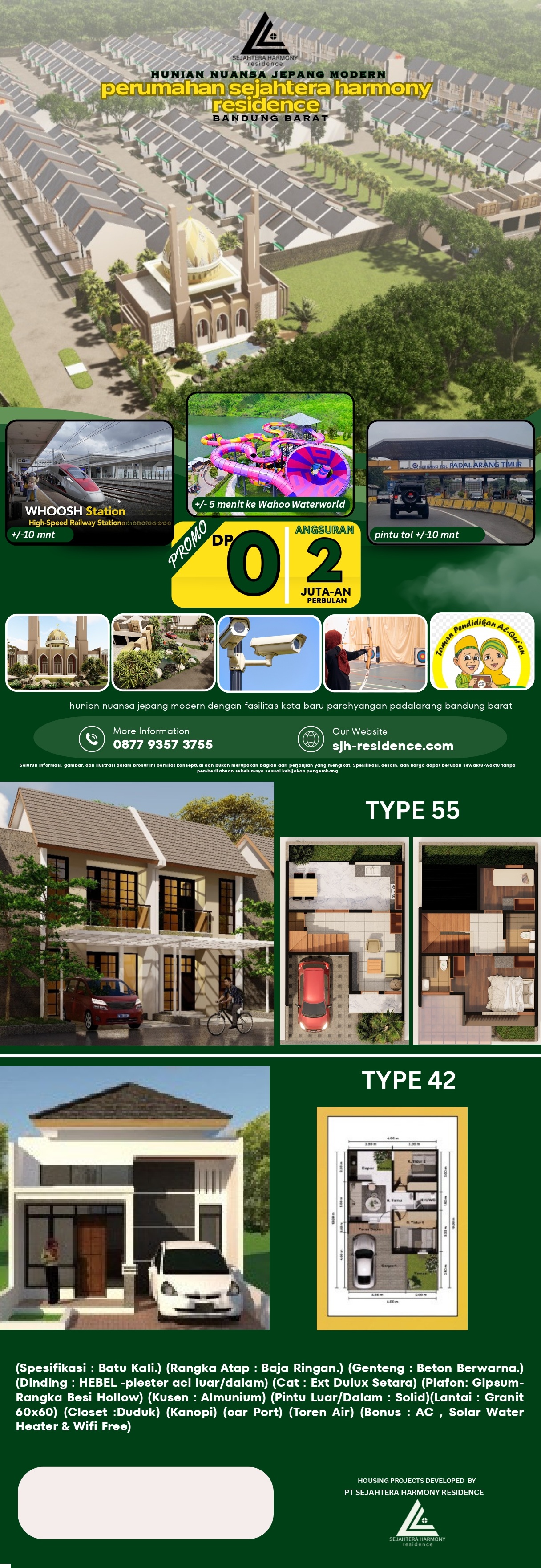 Lingkungan perumahan telah banyak dihuni oleh konsumen dengan berbagai fasilitas akses, Akses jalan tol, Transpotasi 24 jam, kereta cepat whoosh ,Bus Trans IKEA KBP alun alun Bandung, RS Kawaluyan, Hotel Bintang Lima,MC Donald, Jogya junction, Water Boom, Sekolah ,Lapangan Golf dll dengan udara yang sejuk serta bebas polusi, cocok untuk tempat istirahat yang nyaman dengan keluarga. Model Rumah dgn layout yang optimal dengan spesifikasi lantai granit dll lengkap dengan Water Torn , carport dan canopy. Perizinan Lengkap Imb dan sertifikat pecahan siap PPJB .AJB dan Akad Kredit.